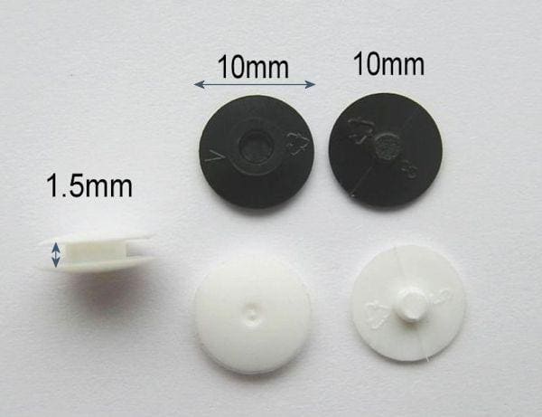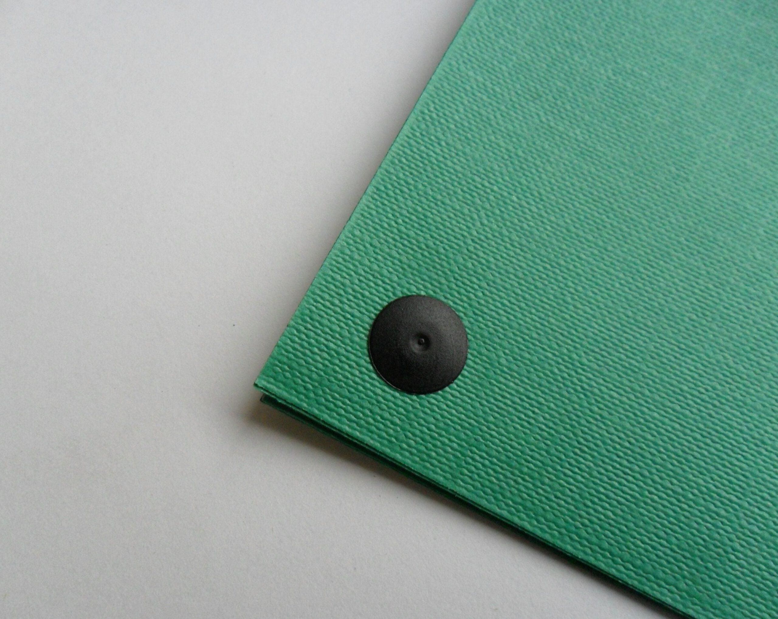 Nity introligatorskie na krótkiej nóżce, wykonane z kolorowego plastiku.